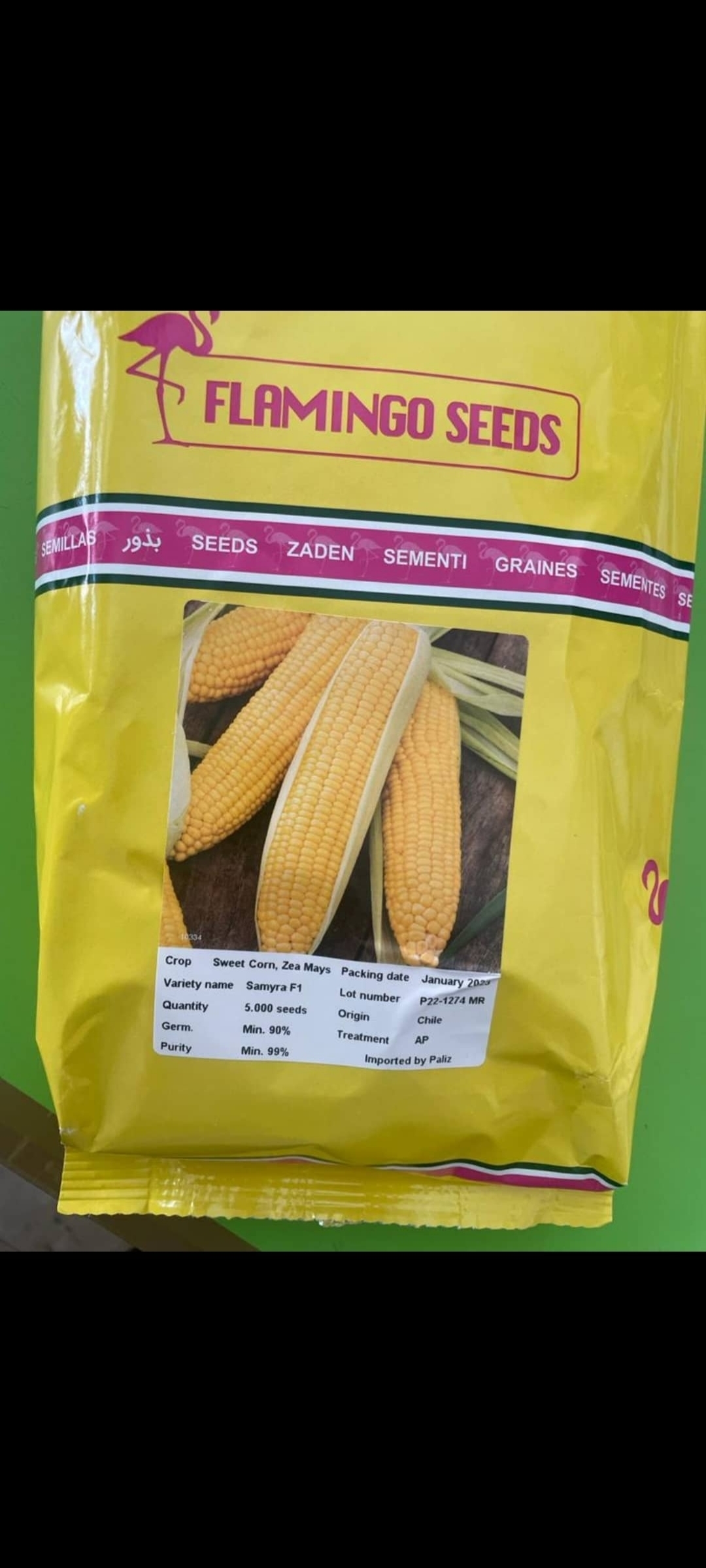 این بذر شیرین (sweet) ذرت در گذشته در بسته بندی های pop vriend به بازار عرضه شده بود، هم اکنون در بسته بندی فلامینگو سیدز توزیع شده است.